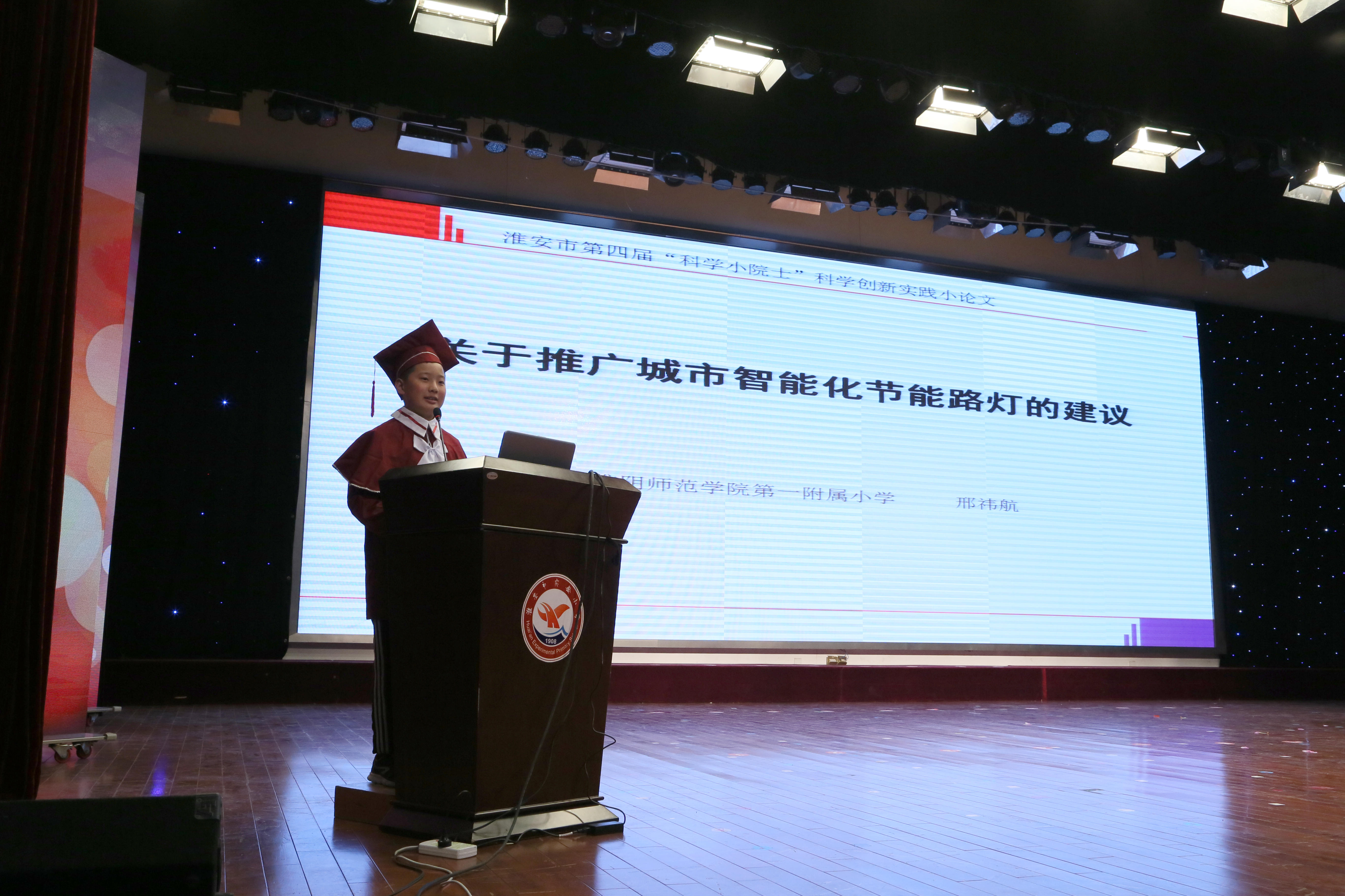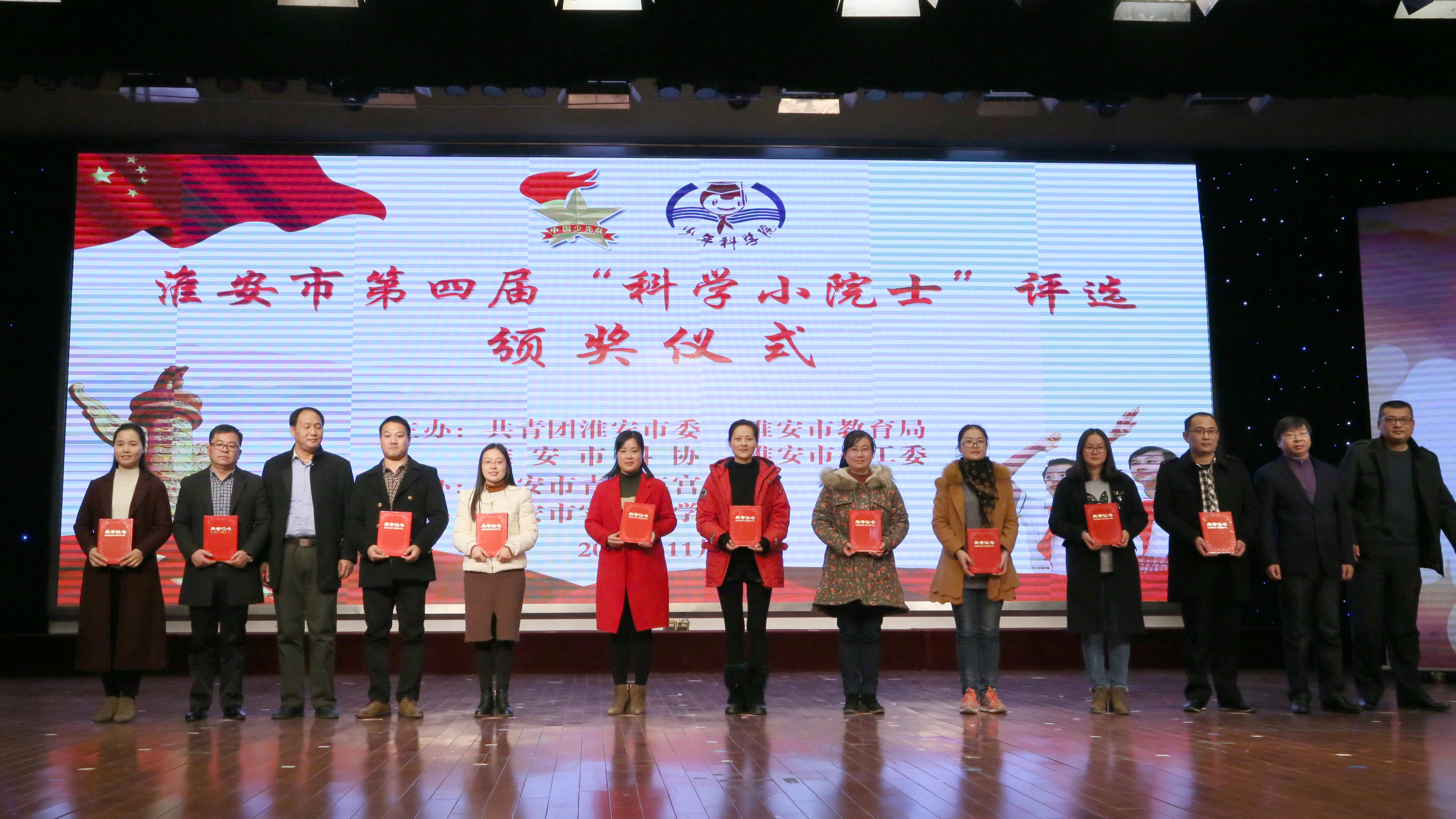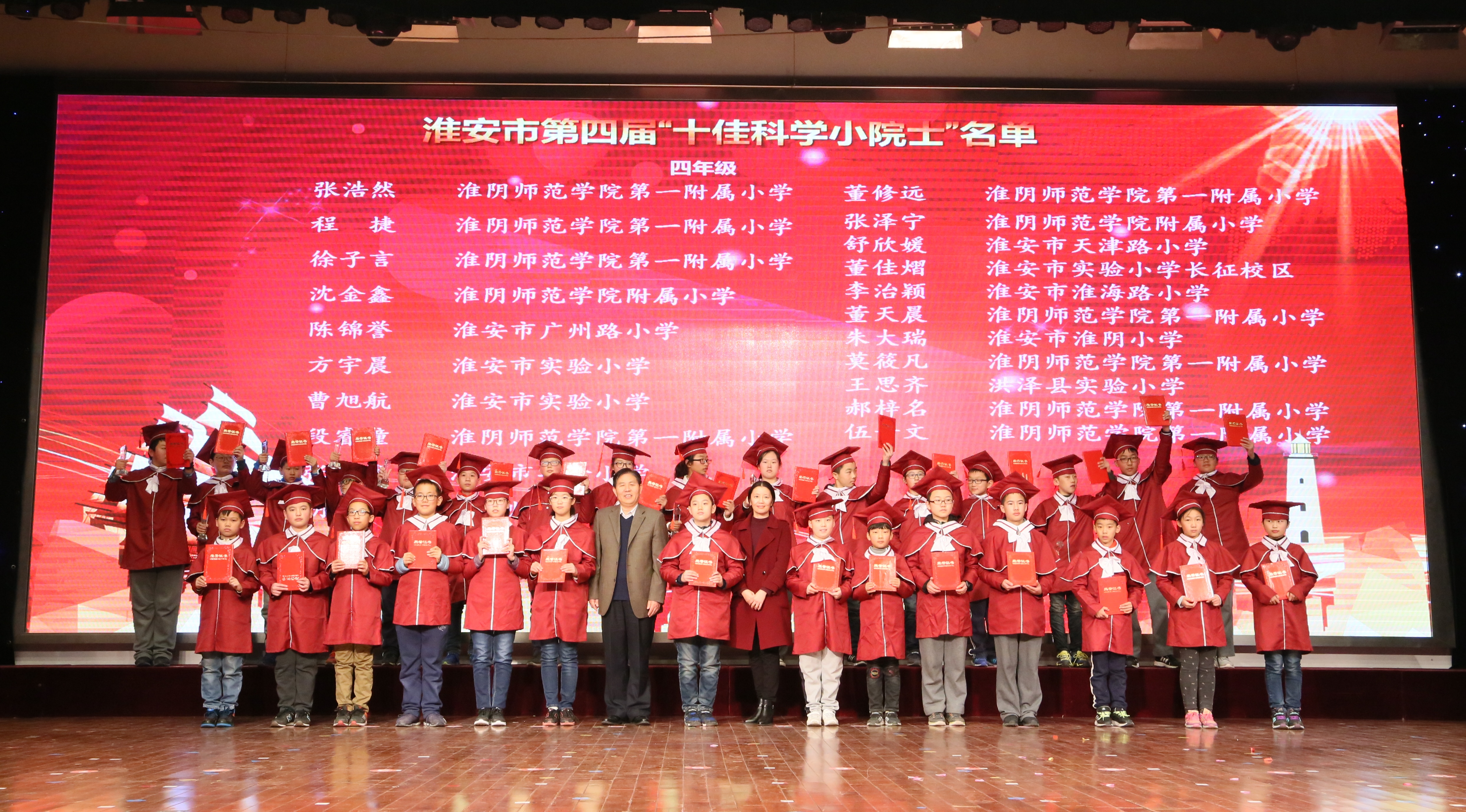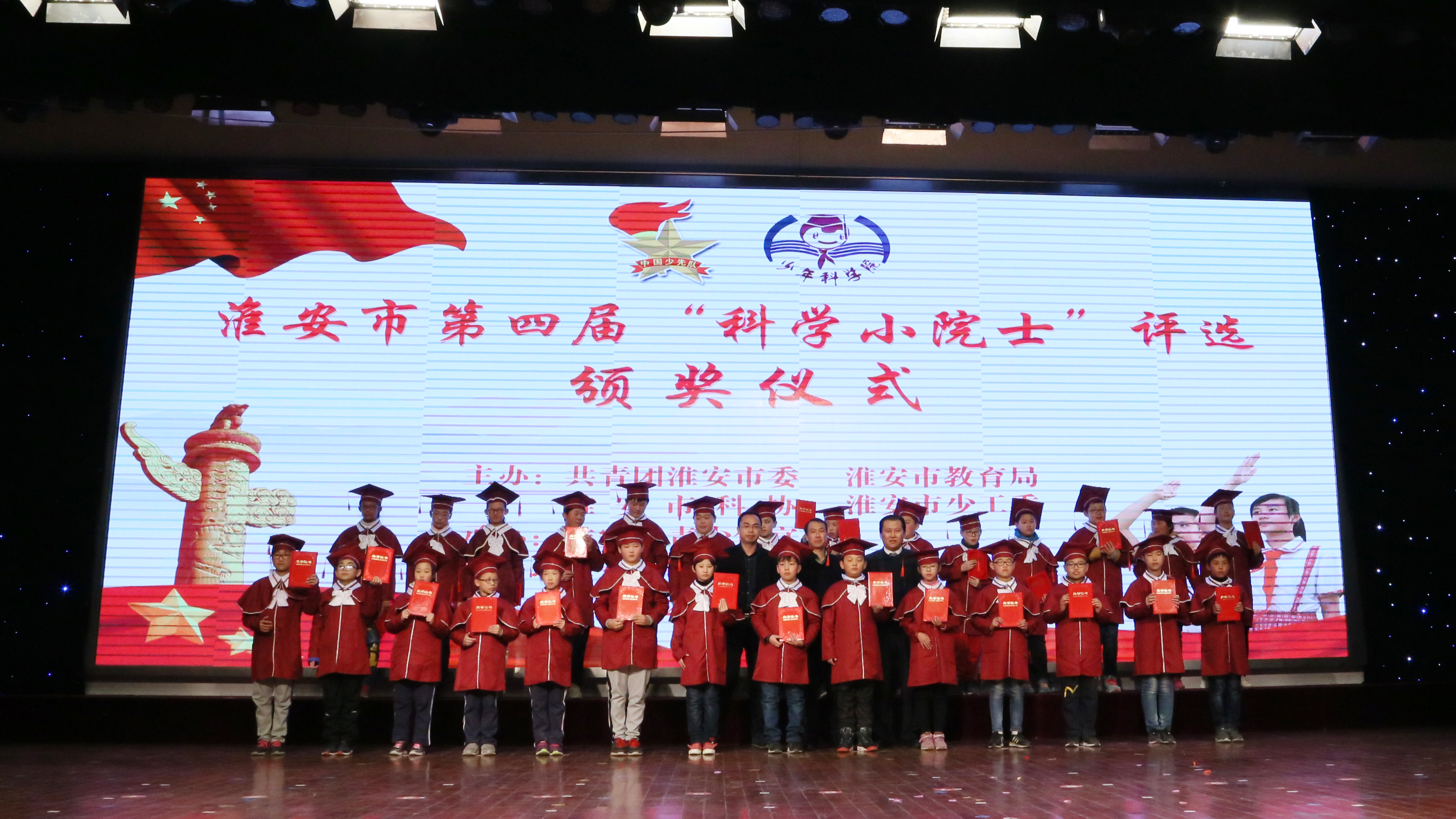 2017年11月21日下午,淮安市第四届"科学小院士"颁奖仪式在市实验小学报告厅举行。团市委许根林书记、市科协王立华主席、市政府教育督导室戴铜副主任、市科协王国芹副主席等领导出席了本次颁奖仪式。