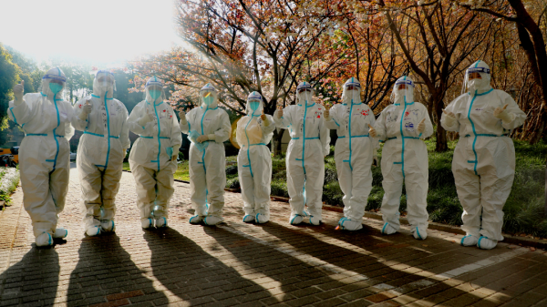 “从早晨3点起床到下午6点结束,为了抢时间完成任务,连续15个小时作战,除了一顿早饭之外一口水没喝一口饭没吃,我们先是在集中采样点给普通的居民采样,完成后,换了套防护服爬楼给小区不能行动的老年人采样。4月的上海,中午的气温比较高,核酸检测采样一直在进行中,密不透气的防护服内的衣服早就汗湿了,实在是累啊,感觉抬不起胳膊了,但仍然告诉自己要咬牙坚持,把任务完成!”这是来自淮安市妇幼保健院的守“沪”团队队员陈蓉蓉讲述她在上海支援的工作。24小时,轮流接班,昼夜不停,保证核酸检测效率最大化。守住一座城,守住我的家。 石塘镇卫生院一线人员在淮安区石塘高速收费站接驳检测点查验外地来淮返淮货车司乘人员健康码、48小时核酸检测证明,并进行消毒杀菌工作。车流量大、昼夜温差大,工作十分辛苦,但青年志愿者们坚持迎难而上、连续作战,纵然声音沙哑,腿已酸麻,也未曾有过一句埋怨,从白天到长夜的漫漫守护,他们用青春与汗水践行了“请党放心,防疫有我”的铿锵誓言。 疫情期间,洪泽团区委组织青年志愿者30余人投身疫情防控工作,在一线以实际行动支持防疫工作,共筑青春战“疫”堡垒。青年志愿者说:“大家每天奋战至凌晨二三点,天未亮又重整行装出发,奔赴全区的各个核酸检测点、交通检查点、高速路口等,担当起秩序引导、数据排查、核酸检测、物资配送等任务,配合属地党委政府开展好各项工作。”青年志愿者们表示在疫情防控的特殊时期,作为有担当的淮安青年,要以“战斗者”的姿态肩负起责任,积极配合全市开展疫情防控工作,为打赢疫情防控阻击战贡献力量。 在淮安市疾控中心战线的流调队伍中,有一群来自全市各疾控中心刚走上工作岗位的90后新丁队员。面对突如其来的宿迁疫情,每个人以高度的责任感和使命感,义无反顾地投入了支援队伍。流调工作复杂、量大、难度高,需要一个不漏的将风险点位、风险人群排查出来,这对没有经验的年轻队员是极大的考验,却没有一个人选择退缩。从4月2日晚9时到达援助点开始,他们立刻投入到紧张的流调中,每日通宵达旦、争分夺秒地开展工作,前三天总共只休息了几个小时。“自己多一份付出,群众健康多一份保障”,这份坚定的信念把青春炼成了钢铁,流调队员们与病毒赛跑,拼尽全部能量,成功做到了流调快速、准确、全面,最大限度地降低疫情扩散风险。 这是淮安市第一人民医院的一支青年党员志愿者队伍,他们在4月3日22:00接到驰援上海紧急任务,23:00到达院集合点,280人迅速分队,在进行感控培训,分配物资,强化防疫注意事项后,向上海出发,开始了“援沪行动”。为了避免感染,志愿者们往往不能喝水、进食,也不能上厕所,每日往返于上海和江苏之间为上海市民进行核酸采样工作。他们住在启东,早上三四点起床去上海崇明完成采样任务,之后又赶往浦东紧急支援江苏扬州分队。大家携手并肩,共同抗疫,定能早日取得这场疫情防控阻击战的胜利。 昆山登云科技职业学院学生沈培昶积极报名参加涟水县防疫一线志愿服务工作,根据县疫情防控指挥部的部署,沈培昶前往涟水县中央城小区协助社区开展“敲门行动”“守门行动”。他挨家挨户宣讲疫情防控政策,发放《告知书》,协助社区摸排来涟返涟人员,并做好双码查验、信息登记、体温测量等工作,助力社区构建疫情防控“铜墙铁壁”。沈培昶在志愿服务过程中发现社区很多老人不会用手机查验“双码”信息,便不厌其烦地一遍又一遍进行指导帮助,更多次关心独居老人是否有生活不便等问题并帮助解决,为疫情防控注入温暖力量。 淮安市中医院援沪核酸采样队队员、肿瘤科护士长刘芬作为一名入党积极分子,2月份报名出征时,没有任何犹豫。从2月份至4月份,她先是支援苏州,然后转战连云港,之后又奔赴上海。在连云港,她第一次感受到了猛烈的海风,大家穿着羽绒服,贴着暖宝宝、顶着寒风,每次出完任务,胳膊、手全部冻僵。到上海的时候气温达到了30度,大家穿着密不透风的防护服跑完几十户人家,汗如雨下,防护服里的衣服浸湿,皮肤上出现湿疹,但大家毫不懈怠、竭尽所能,出色完成了每一次任务。市中医院援沪核酸采样队共20人,平均每天完成采样8000余份,每当听到群众和志愿者们感谢和关心的话语,他们都为自己打气:一切辛苦都是值得的。 当“大白”们活跃在战疫一线时,费蕾蕾用奇思妙想为队友们绘制别出心裁的“战袍”,让紧张的工作多一些可爱轻松的元素。费蕾蕾是淮安市妇幼保健院援沪核酸采样队的一员,作为多次参加支援活动的老队员,她在队伍中一直扮演着知心大姐的角色,每天除了检查大家防护装备穿着是否到位,还有一项重要工作就是用画笔给防护服增添色彩。全队20名战友每天愉悦的工作心情,她都给“安排”好了。费蕾蕾说:“穿着密不透风的防护服进行高强度的工作,难免会出现疲态,但是穿上手绘战袍后大家立马活力满满,彼此激励、鼓舞,辛苦并快乐着。”她希望通过这样的方式“承包”每一位队员的快乐,相信在大家的共同努力下,这次疫情的阴霾终将散去。