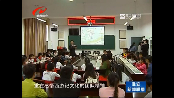 学校副院长董炯华在接受淮安电视台《新闻联播》栏目组采访时表示:"用大手拉小手,体验西游文化和运河文化,重点感悟西游记文化中的团队精神以及运河文化中的开放风范,让学生在个人素质和能力培养方面获得文化的熏陶和潜移默化的影响。"