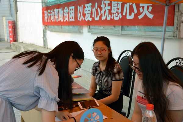有这样一群孩子,父母离家,老翁相依,小小年纪便承担了本不该背负的责任和压力。他们翘首以盼盼不到父母回家一聚,望眼欲穿望不到爷娘殷殷深情。为关爱留守儿童,传递淮阴师范学院学子的浓浓爱心,2017年6月15日至17日间,经济与管理学院团委主办的"用行动帮助贫困,以爱心抚慰心灵"主题三下乡募捐活动在淮阴师范学院交通路校区学生食堂旁进行。