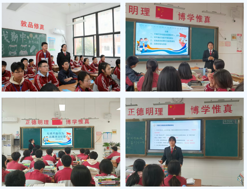 5月12日,团涟水县委联合县法院到涟水四中开展普法宣讲。干警们以“杜绝不良行为,远离违法犯罪”为主题,讲解“违法”与“犯罪”的定义及其危害,并引导同学们自我检视,助力他们提高风险防范意识,树立正确的价值观。5月29日,团县委联合县法院在涟水四中开展法律小课堂。干警在了解学情后,针对班级个性问题,结合《民法典》等法规,讲解不良行为与违法犯罪相关知识,引导同学们增强自我防范意识,推动法治理念深入人心。 盱眙县