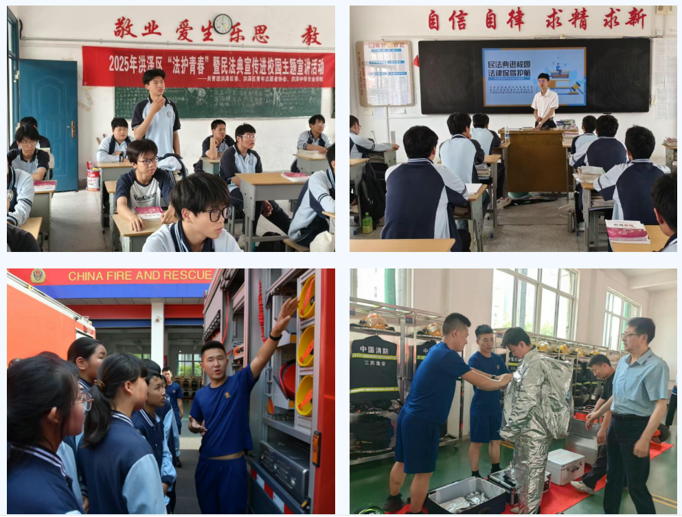 5月27日,团洪泽区委联合区青年志愿者协会在江苏省洪泽中等专业学校开展“法护青春·典亮校园”主题普法活动。马家伟会长通过生动案例讲解民法典要点,助力青少年增强法治观念,扣好“法治的扣子”。5月28日,团区委联合区青年志愿者协会组织洪泽湖初级中学学生走进消防站,开展“我们的节日——端午节”实践活动。消防员刘梦晨将端午习俗与消防安全知识融合,用通俗易懂的语言讲解防火要点,让学生在感受传统文化魅力的同时,也增强自身的安全意识。