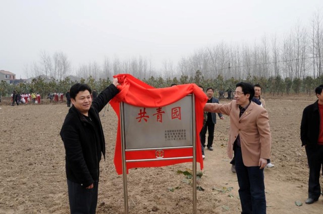 本次植树活动的启动仪式由共青团淮安市委副书记沈晓红主持,团淮安市委书记陈灼讲话,仪式结束后,陈灼书记和青商会童玉祥会长共同为新建成的"共青园"环保示范林揭牌。